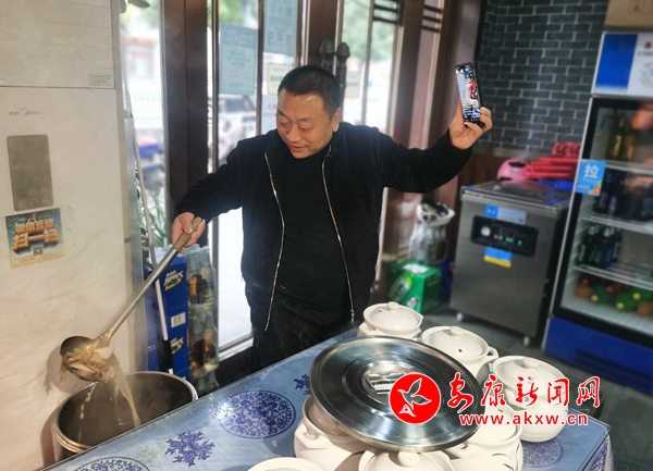 白天店內(nèi)忙碌的時(shí)候,“70后”的梁存杰會(huì)舉著手機(jī),記錄下食客排隊(duì)購買自家鹵豬蹄的畫面。到了傍晚,當(dāng)?shù)陜?nèi)的客流達(dá)到頂峰時(shí),后廚里忙碌的場景又成了他的視頻素材。他會(huì)在閑暇之余將這些拍攝的素材進(jìn)行簡單剪輯后發(fā)布在自己的短視頻賬號上和朋友圈里,他的目的很簡單:“就是想讓大家都知道天源飯莊,在短視頻上介紹新菜,包括客戶的評價(jià),都是為了吸引更多的顧客,做生意嘛,就是圖一個(gè)生意興!”