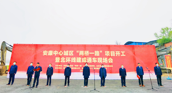 本網(wǎng)訊 (記者 艾蓓)3月22日,安康中心城區(qū)“兩橋一路”項(xiàng)目開工暨北環(huán)線建成通車現(xiàn)場會(huì)在漢濱區(qū)關(guān)廟漢江大橋(二橋)西側(cè)河灘北岸召開。