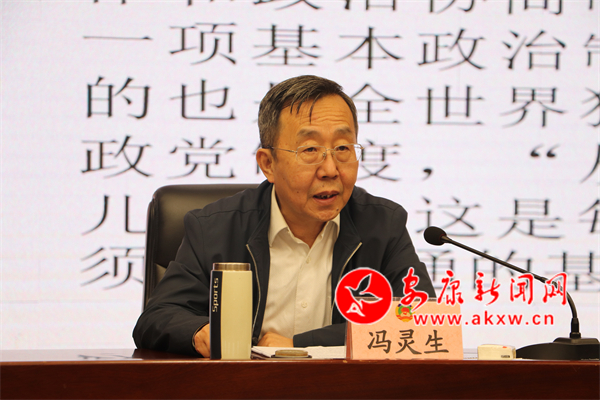 會議邀請省政協(xié)第十二屆常委、中國人民政協(xié)理論研究會理事、陜西省政協(xié)理論與實踐研究會會長馮靈生做專題輔導(dǎo)。馮靈生從中國共產(chǎn)黨統(tǒng)一戰(zhàn)線工作的偉大創(chuàng)造、人民政協(xié)的發(fā)展歷程、人民政協(xié)的經(jīng)常性工作、如何做一名新時代合格的政協(xié)委員等四個方面精準闡釋了人民政協(xié)的基本理論、基本知識以及政協(xié)委員履行職能的基本要求,報告深入淺出、內(nèi)涵豐富,在履職盡責、參政議政、發(fā)揮委員作用上具有很強的理論指導(dǎo)作用。