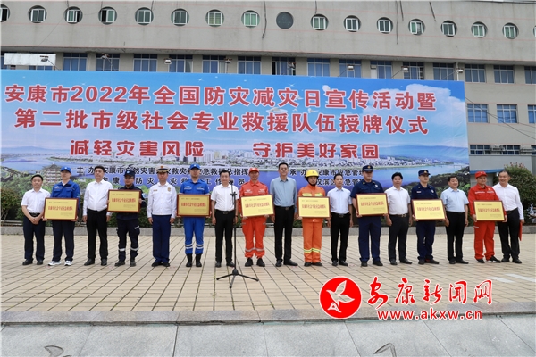 活動中,市安委辦負(fù)責(zé)同志宣讀了《關(guān)于組建安康市第二批市級社會專業(yè)應(yīng)急救援隊伍的通知》,明確了第二批市級社會專業(yè)救援隊伍的結(jié)構(gòu)、職責(zé)以及日常管理等內(nèi)容。隨后,高晶華與參加活動的漢濱區(qū)、市直部門負(fù)責(zé)同志共同為第二批市級社會專業(yè)救援隊伍、省級減災(zāi)示范社區(qū)授牌,為2021年度應(yīng)急救援先進(jìn)集體頒獎,并宣布我市2022年全國防災(zāi)減災(zāi)日宣傳活動啟動。