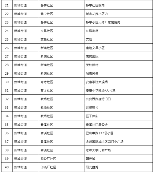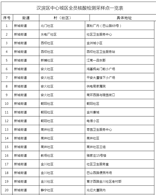 附件:漢濱區(qū)中心城區(qū)全員核酸檢測采樣點(diǎn)一覽表