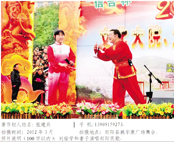 劉銓學(xué)和妻子在旬陽祝爾慷廣場演唱旬陽民歌