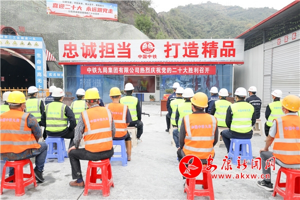△中鐵九局西康高鐵項(xiàng)目部組織工作人員收聽(tīng)收看中國(guó)共產(chǎn)黨第二十次全國(guó)代表大會(huì)開(kāi)幕會(huì)直播。(記者 羅超)