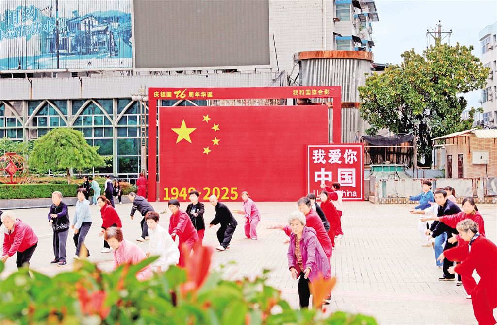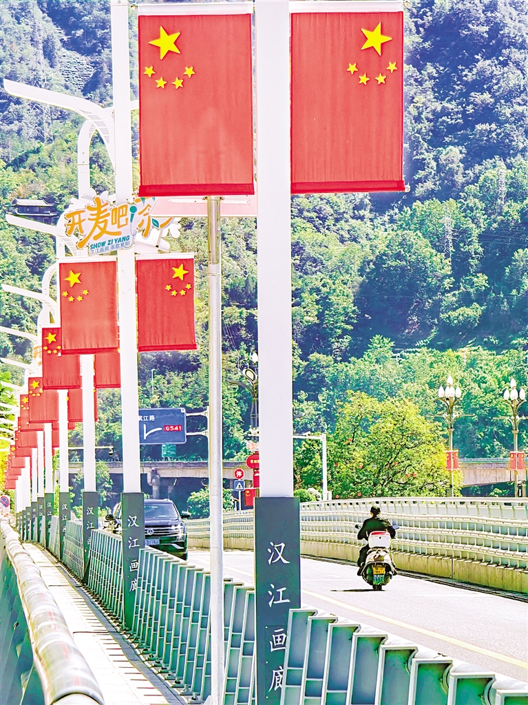 紫陽城區(qū)的街頭巷尾,一面面鮮艷的五星紅旗迎風招展,處處洋溢著祥和的節(jié)日氛圍。