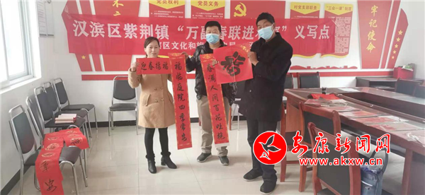 本網(wǎng)訊(通訊員 宮再朋 張艷)1月27日,在紫荊鎮(zhèn)各村文化活動(dòng)室里,來(lái)自各村的書(shū)法愛(ài)好者們揮毫潑墨,為村民們義寫(xiě)春聯(lián)。一副副飄著墨香,飽含著濃濃年味、美好……