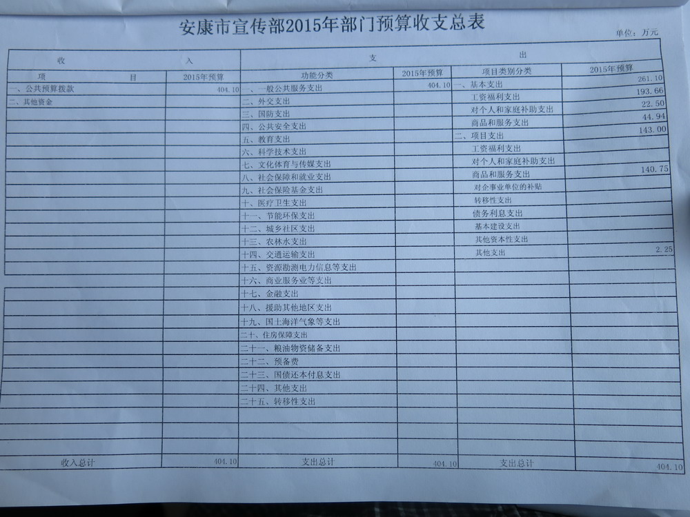 四、部門預(yù)算收支表