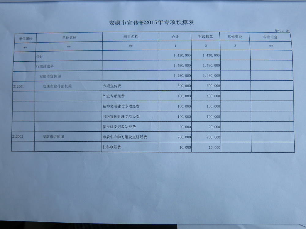 附:1、市委宣傳部(講師團(tuán))2015年收支預(yù)算總表