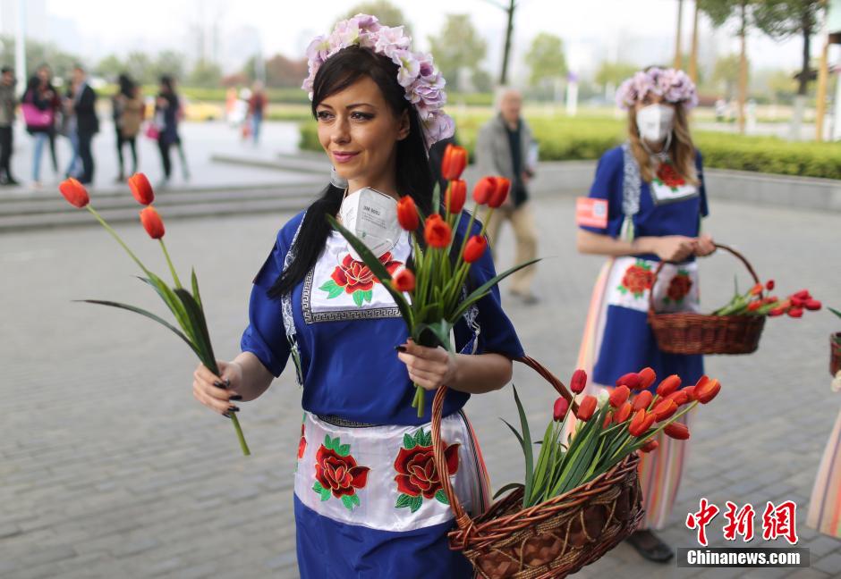 南京街頭靚麗“花仙子” 派發(fā)郁金香倡導綠色生活