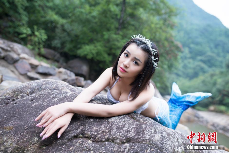 江西龍虎山上演真人版“美人魚(yú)Twins”