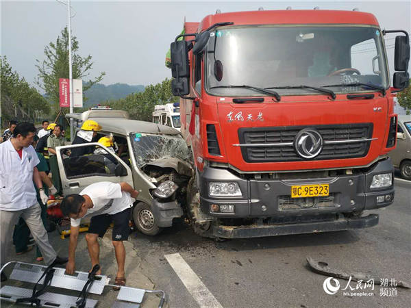 昨日,十堰市公安局東岳分局茅箭消防中隊接到119指揮中心警令:在林蔭大道往華西農(nóng)商品批發(fā)市場附近發(fā)生車禍,有人員被困。茅箭中隊接到警令后迅速集結(jié)消防員,帶上破拆工具趕赴現(xiàn)場救援。