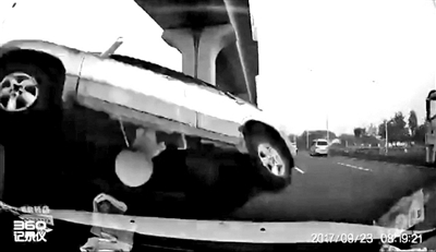 遭到撞擊的SUV騰空翻起