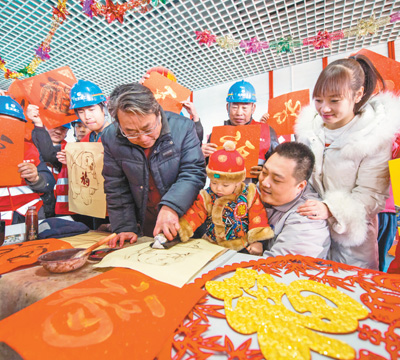 2月7日,北京木版年畫匠人張闊正為北京建工集團(tuán)總承包部A2工程項(xiàng)目部的工人們現(xiàn)場印制生動(dòng)的狗年木版年畫。再過幾天就要過年了,北京市文聯(lián)組織藝術(shù)家們?yōu)檫@些北京副中心的建設(shè)者們送上春聯(lián)年畫和祝福。(記者 徐燁 攝) wvQ安康新聞網(wǎng)