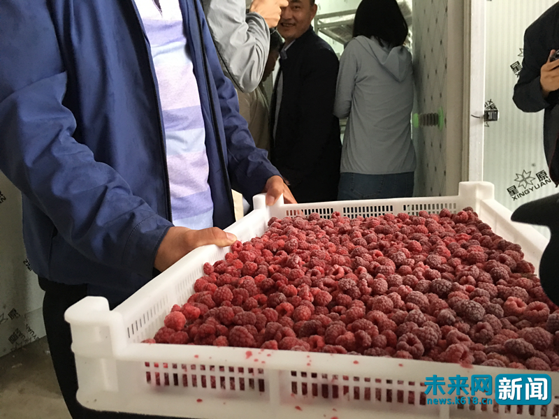 2018年7月10日,康樂縣上灣鄉(xiāng)巴馬村村民剛采摘下來的高原樹莓儲存在當(dāng)?shù)氐摹肮蚕砝鋷臁敝。未來網(wǎng)記者賀卓輝 攝