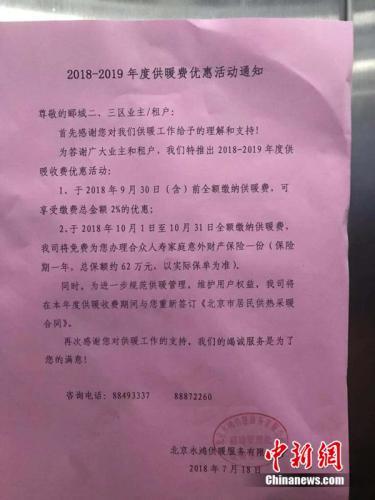 某小區(qū)內(nèi)張貼的收取供暖費(fèi)通知。中新網(wǎng)孫悅 攝