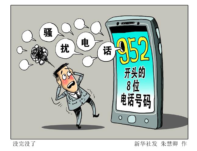 近來,不少手機用戶吐槽:接到以952開頭的8位電話號碼,或者沒完沒了地放錄音推銷,或自稱公司客服告知你中獎了……即使把這個號碼拉入“黑名單”,但不久又有同類電話不斷打入。