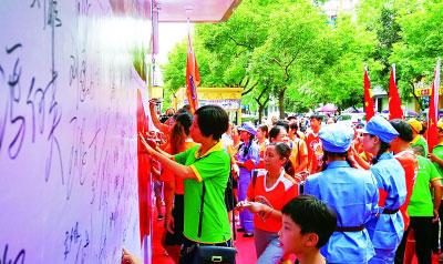 江西省遂川縣舉行“紀(jì)念抗日戰(zhàn)爭(zhēng)勝利七十三周年暨萬人簽名儀式”活動(dòng),教育和激勵(lì)人們銘記歷史、珍愛和平、熱愛祖國。光明圖片/視覺中國