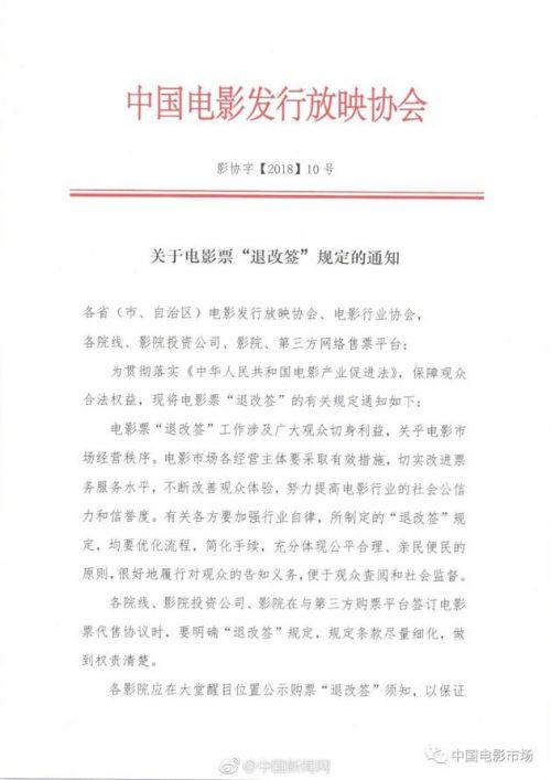中國電影發(fā)行放映協(xié)會(huì)要求電影市場各有關(guān)經(jīng)營主體,制定改進(jìn)完善電影票“退改簽”工作的實(shí)施方案,并盡快付諸實(shí)施。中國電影發(fā)行放映協(xié)會(huì)、全國電影市場專項(xiàng)治理辦公室將對(duì)落實(shí)情況進(jìn)行專項(xiàng)檢查。