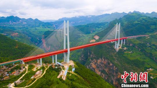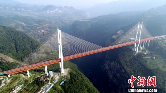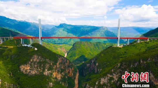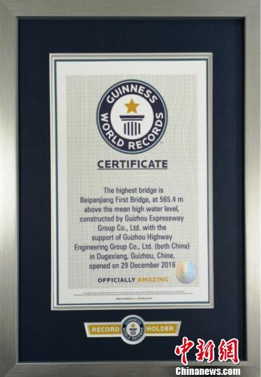 中新網(wǎng)貴陽9月19日電(周燕玲)記者19日從貴州省交通運輸廳獲悉,杭瑞高速畢都北盤江大橋,經(jīng)世界紀錄認證機構——吉尼斯世界紀錄有限公司認證,北盤江大橋橋面距江面垂直高度達565.4米,榮獲“世界最高橋”之稱,載入世界紀錄大全史冊。
