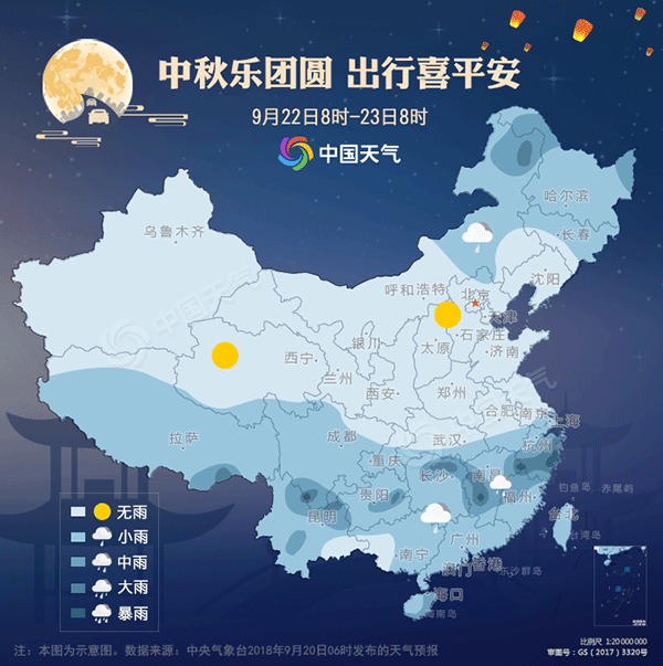 圖為2018年中秋假期(9月22-24日)出行天氣預報