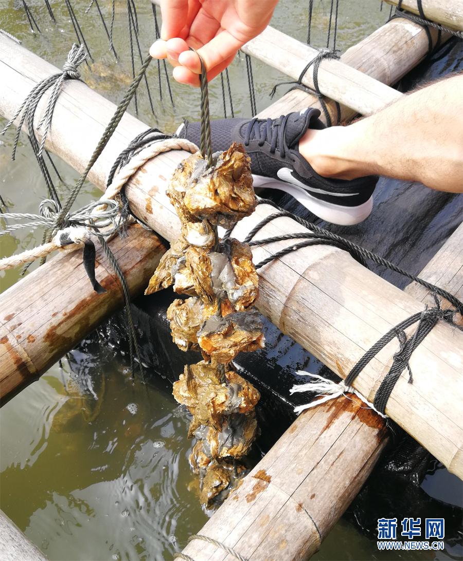 吊養(yǎng)的生蠔。新華網(wǎng) 盧鑒 攝