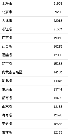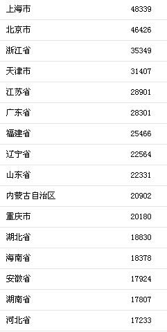 前三季度31省區(qū)市人均可支配收入。來自國家統(tǒng)計局