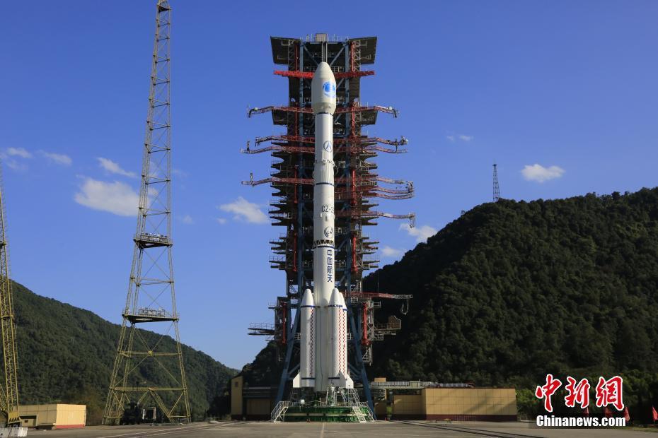 11月1日深夜23時57分,中國在西昌衛(wèi)星發(fā)射中心用長征三號乙運載火箭,成功發(fā)射第41顆北斗導(dǎo)航衛(wèi)星。這顆衛(wèi)星屬于地球靜止軌道衛(wèi)星,是中國北斗三號系統(tǒng)第17顆全球組網(wǎng)衛(wèi)星,也是北斗三號系統(tǒng)首顆地球靜止軌道衛(wèi)星。圖為衛(wèi)星發(fā)射前,火箭在發(fā)射場進(jìn)行吊裝(資料圖片)。中新社發(fā) 史嘯 攝