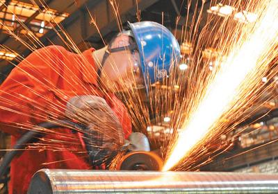 圖為遼寧大連特殊鋼制品有限公司員工在檢查修磨大棒材產(chǎn)品。