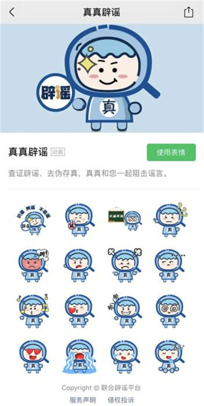 我為自己設計了一個可愛的卡通形象——真真,在微信表情商店上線了16款表情,讓辟謠“動起來”,在指尖傳遞正能量。同時,我還推出了“真真說”系列辟謠短視頻,用生動可愛的方式將辟謠知識傳遞給大家,寓教于樂。