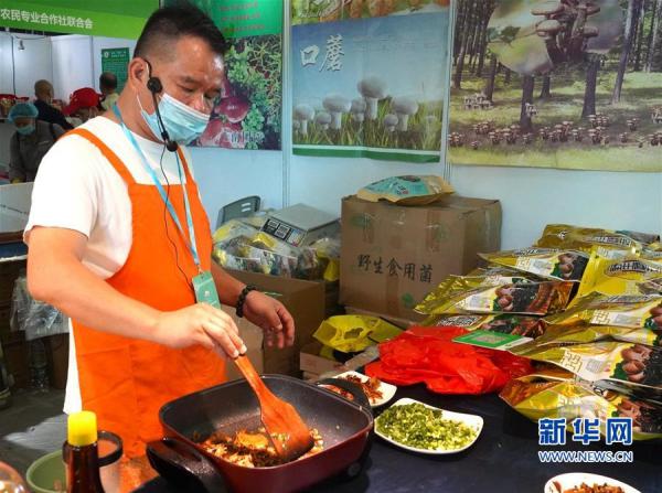 11月6日,參展商在森林食品展區(qū)烹制古田食用菌。新華社記者 褚萌萌 攝
