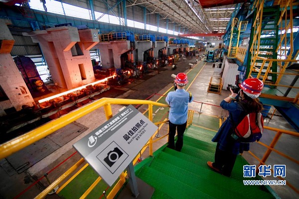 11月17日,參觀者在福建省三明市三鋼集團觀光工廠內(nèi)拍攝。新華社記者 姜克紅 攝