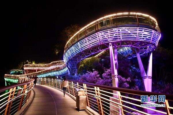 11月23日晚,市民和游客在福建沙縣虬龍橋棧道散步休閑。新華社記者 姜克紅 攝