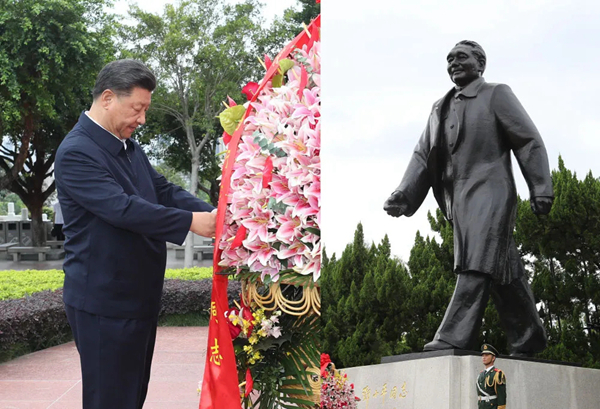 2020年10月14日,深圳經(jīng)濟(jì)特區(qū)建立40周年慶祝大會(huì)在廣東省深圳市隆重舉行。中共中央總書記、國(guó)家主席、中央軍委主席習(xí)近平在會(huì)上發(fā)表重要講話。這是當(dāng)天下午,習(xí)近平來到蓮花山公園,向鄧小平同志銅像敬獻(xiàn)花籃。新華社記者 王曄 攝