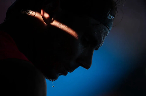 2020年1月25日,西班牙選手納達(dá)爾在澳大利亞墨爾本舉行的澳大利亞網(wǎng)球公開賽男子單打第三輪比賽中汗如雨下。新華社記者 白雪飛 攝