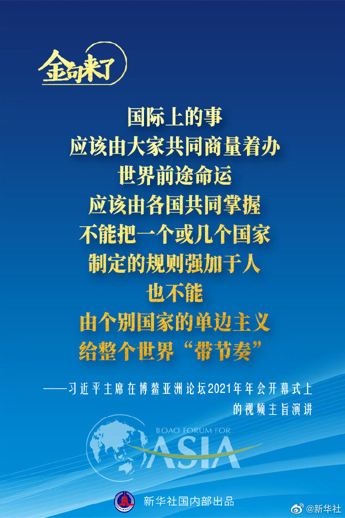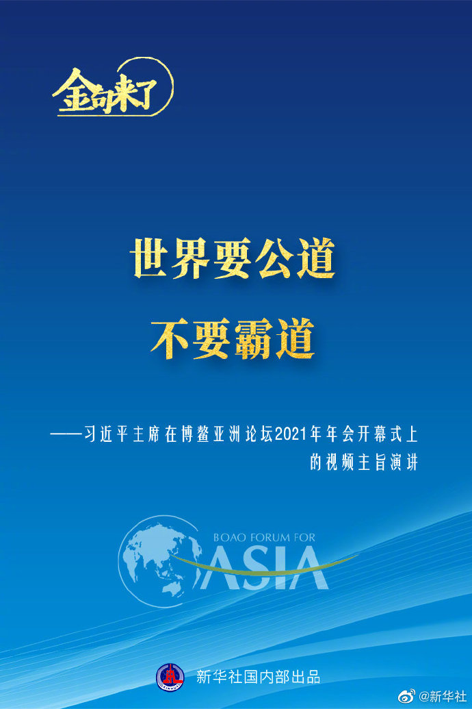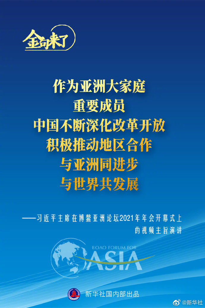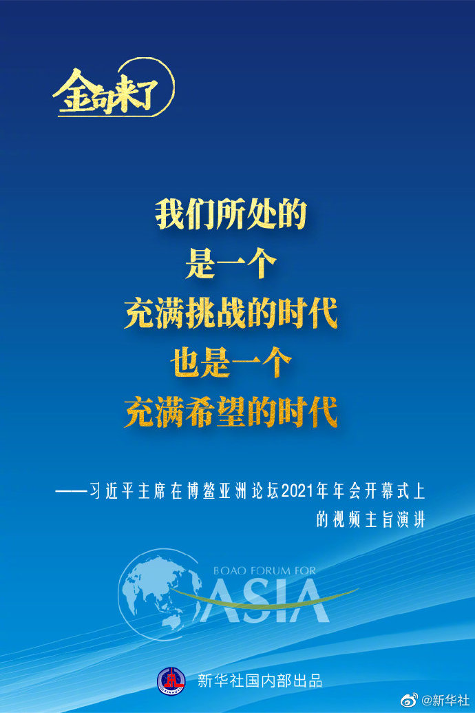 4月20日,習(xí)近平主席在博鰲亞洲論壇2021年年會(huì)開幕式上以視頻方式發(fā)表主旨演講。一起來看演講金句! JDu安康新聞網(wǎng)