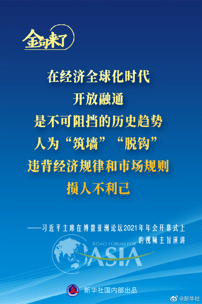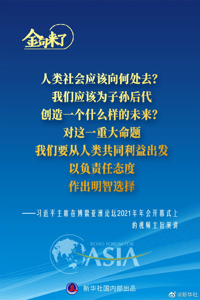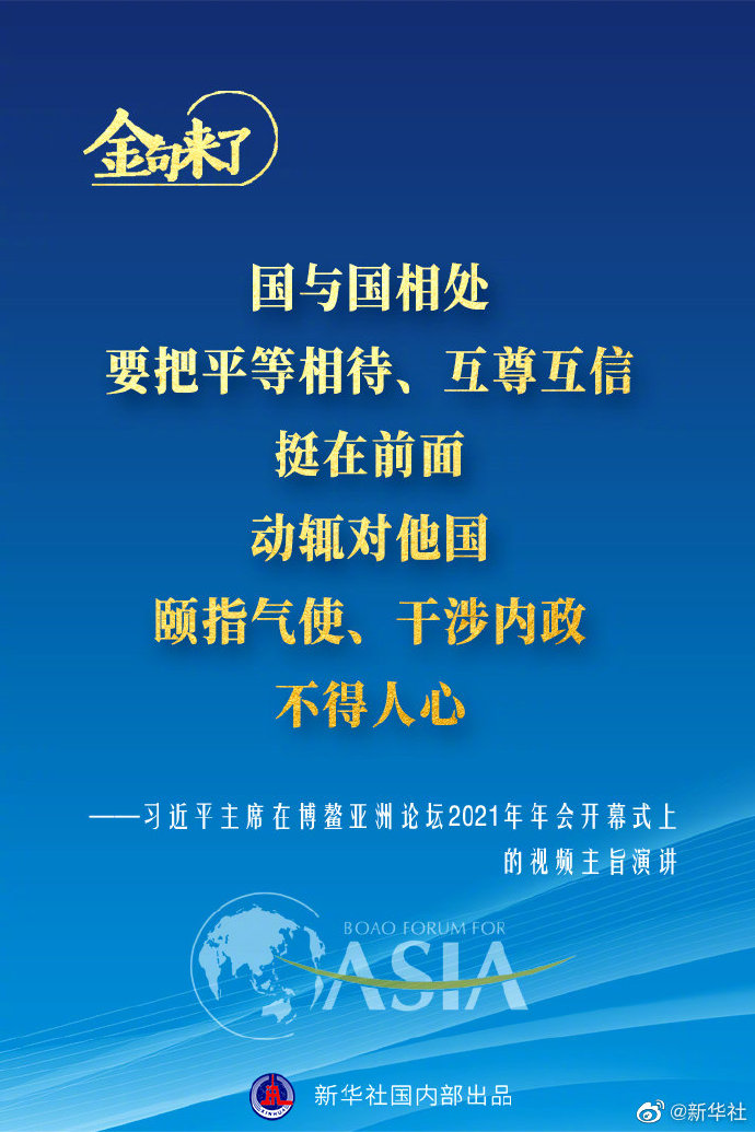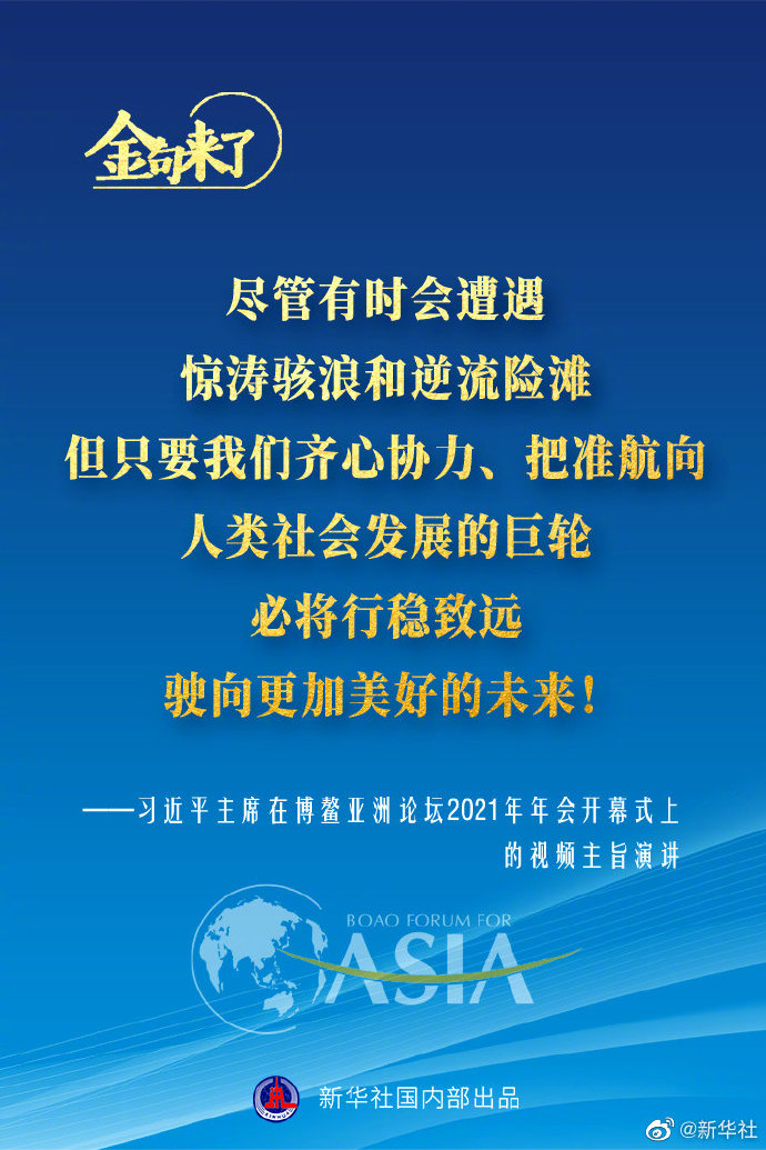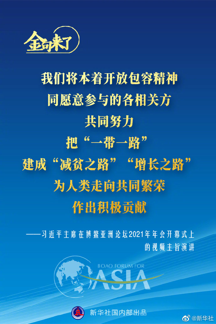 4月20日,習(xí)近平主席在博鰲亞洲論壇2021年年會(huì)開幕式上以視頻方式發(fā)表主旨演講。一起來看演講金句! JDu安康新聞網(wǎng)