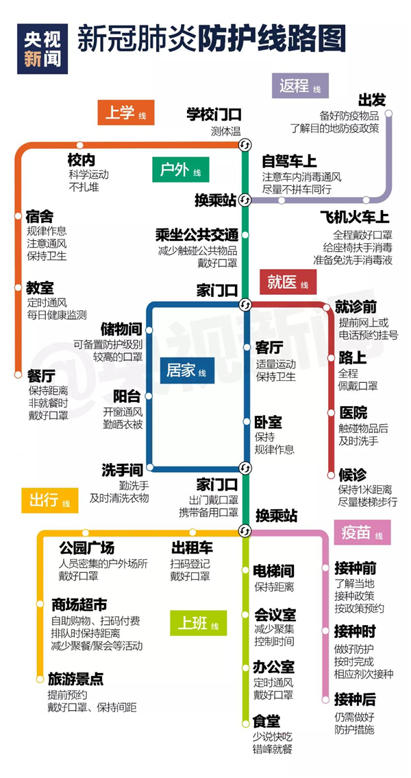 開學臨近,疫情防控又到了關(guān)鍵時期,返程路上、校園里、外出途中該如何做好防護?這張“線路圖”給你答案。