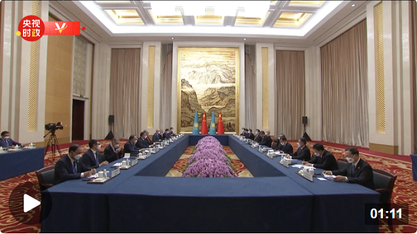 習(xí)近平說,熱烈歡迎托卡耶夫總統(tǒng)來華出席中國-中亞峰會并進(jìn)行國事訪問。很高興在西安接待托卡耶夫總統(tǒng)。今天是你70歲生日,再次祝你生日快樂。在這個特殊日子里,你來華進(jìn)行國事訪問,彰顯了兩國關(guān)系的高水平,也再次印證了你同中國的不解之緣。