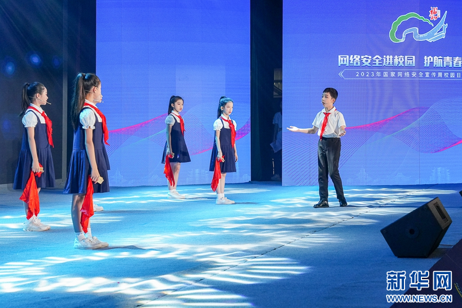 9月12日,校園日活動(dòng)啟動(dòng)儀式上,學(xué)生表演“文明凈網(wǎng)”主題音樂(lè)快板節(jié)目。新華網(wǎng) 肖和勇 攝
