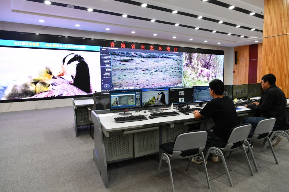 8月8日,青海省生態(tài)環(huán)境廳信息中心工作人員正在分析野生動物監(jiān)測畫面。(劉紅 攝)2FK安康新聞網(wǎng)