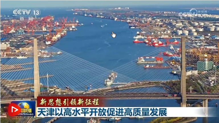 央視網(wǎng)消息(新聞聯(lián)播):習(xí)近平總書記指出,我們要全面提高對(duì)外開(kāi)放水平,建設(shè)更高水平開(kāi)放型經(jīng)濟(jì)新體制,形成國(guó)際合作和競(jìng)爭(zhēng)新優(yōu)勢(shì)。天津充分發(fā)揮自身區(qū)位優(yōu)勢(shì),穩(wěn)步擴(kuò)大制度型開(kāi)放,努力打造開(kāi)放層次更高、輻射作用更強(qiáng)的改革開(kāi)放新高地,以高水平開(kāi)放促進(jìn)高質(zhì)量發(fā)展。