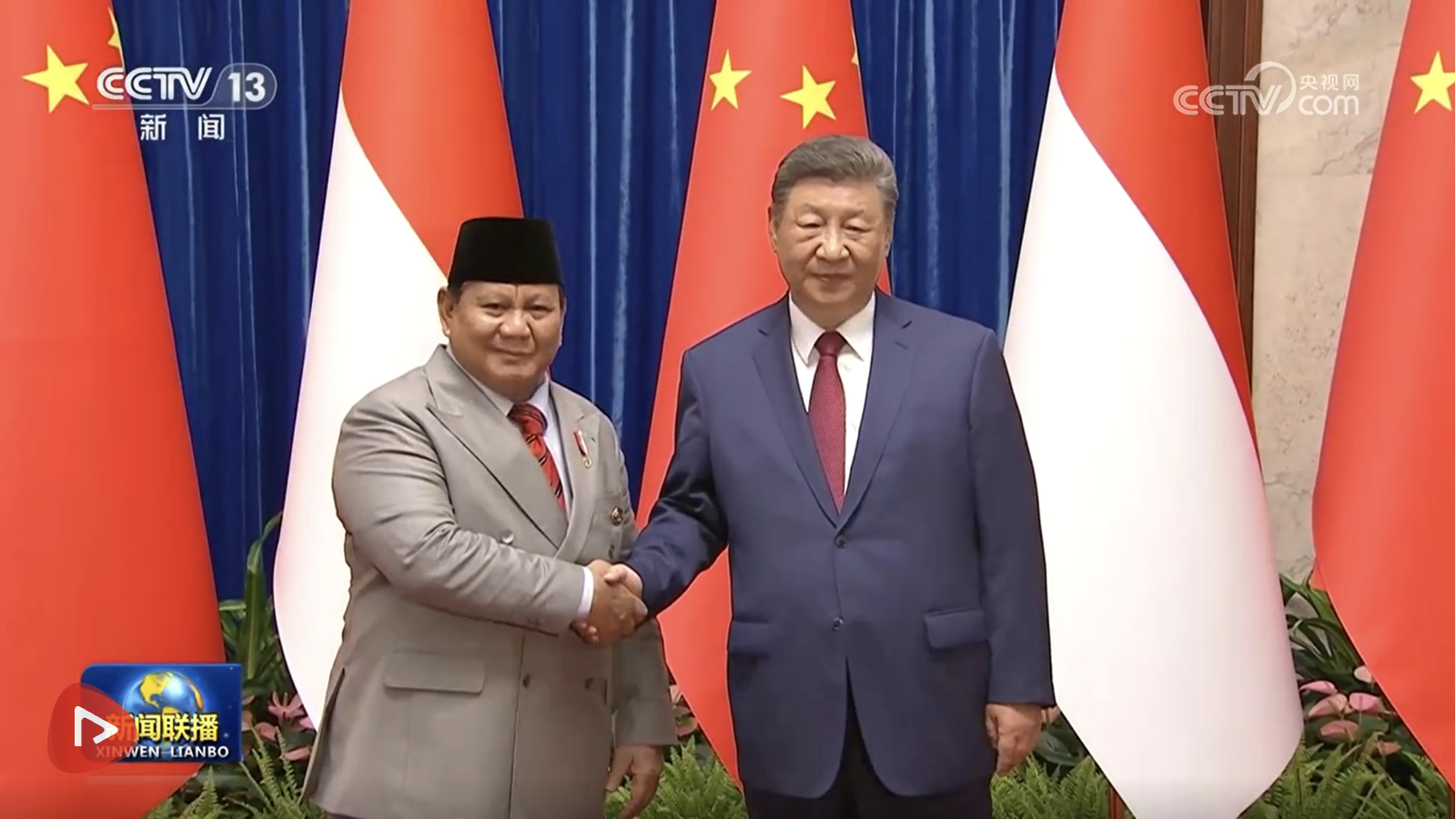 9月3日下午,國家主席習(xí)近平在北京人民大會堂會見專程來華出席紀(jì)念中國人民抗日戰(zhàn)爭暨世界反法西斯戰(zhàn)爭勝利80周年活動的印度尼西亞總統(tǒng)普拉博沃。