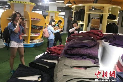 在廣河縣電商創(chuàng)業(yè)孵化園中,由當(dāng)?shù)厝嗽凇昂髲S”中制作的服飾在“前店”中受民眾熱捧。艾慶龍攝 (脫貧攻堅(jiān)在行動)甘肅廣河傳統(tǒng)“針線活”走俏 農(nóng)婦掙錢顧家“兩……