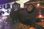 轎車沖下農(nóng)展橋 駕駛?cè)恕笆?lián)”
