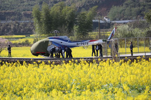 3月22日上午,一架AC311直升機載著一批又一批乘客從婺源江灣起飛,然后盤旋在婺源著名景點篁嶺上空,讓游客體驗了全新的“坐直升機看油菜花”旅游項目。航線飛行……
