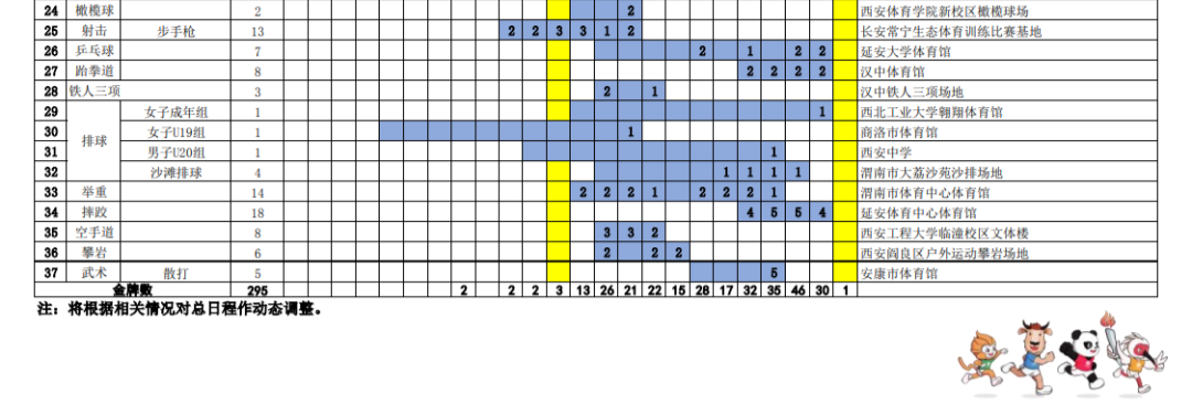 8月3日,國家體育總局辦公廳公布了第十四屆全國運動會競賽總日程(2.0版)。根據(jù)東京奧運會賽程,以及疫情防控工作需要,國家體育總局調整了部分項目的競賽日程。vTn安康新聞網(wǎng)