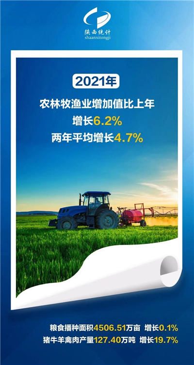 農(nóng)業(yè)生產(chǎn)穩(wěn)定,2021年,全省農(nóng)林牧漁業(yè)增加值同比增長(zhǎng)6.2%,兩年平均增長(zhǎng)4.7%;糧食播種面積4506.51萬(wàn)畝,同比增長(zhǎng)0.1%;蔬菜及食用菌產(chǎn)量2012.82萬(wàn)噸,同比增長(zhǎng)2.8%;園林水果1896.46萬(wàn)噸,同比增長(zhǎng)4.9%;豬牛羊禽肉產(chǎn)量127.40萬(wàn)噸,同比增長(zhǎng)19.7%。