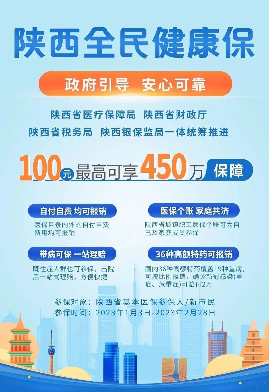 為了助力陜西省疫情防控,推動復工復產(chǎn),陜西“全民健康保”還向參保人贈送“新冠病毒保障責任”,無需參保人再額外支付保費,對2023年上半年確診新冠病毒重型或危重型的參保人,一次性給付保險金2萬元。