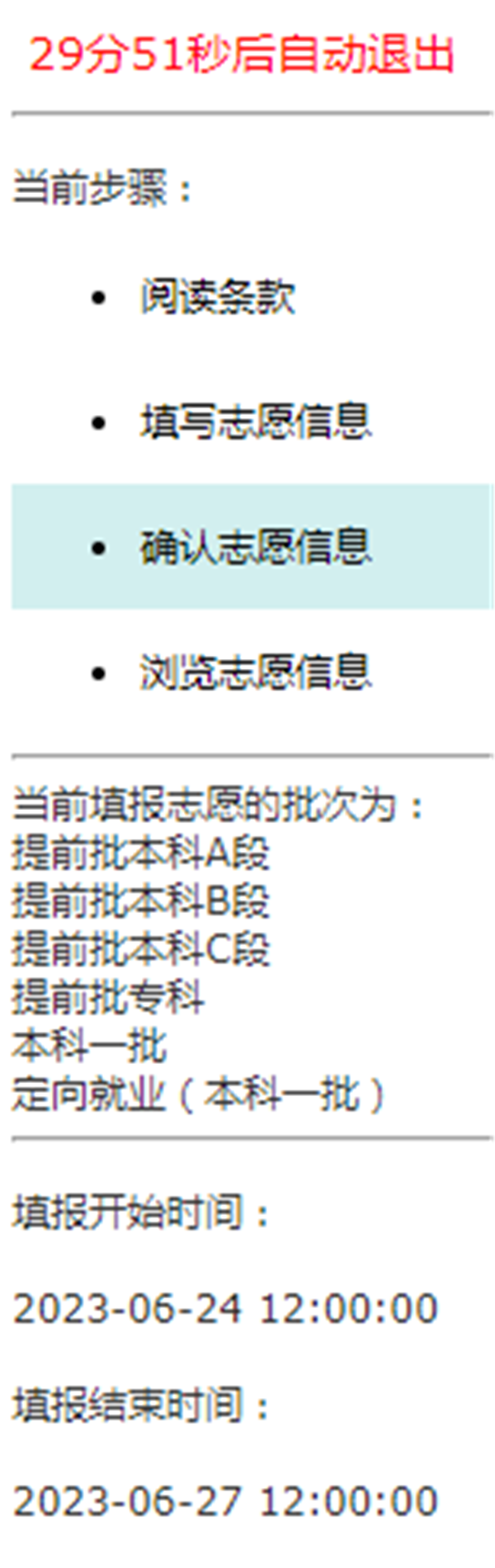 4.進入確認志愿頁面,檢查所填志愿,均無須修改后點擊“確認”。
