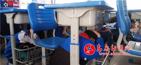 演練分為室內(nèi)緊急避險和應(yīng)急疏散兩個環(huán)節(jié)。上午9時許,隨著第一次地震防空警報聲急促響起,各班班主任立刻指導(dǎo)學(xué)生室內(nèi)防震技能,指揮學(xué)生迅速躲在各自課桌的旁邊,閉眼,蹲下身體擋住頭部。1分鐘后,再一次發(fā)出地震防空警報聲,在老師的引導(dǎo)下,各班有序秩地撤離,撤離全程不到三分鐘。Wyf安康新聞網(wǎng)