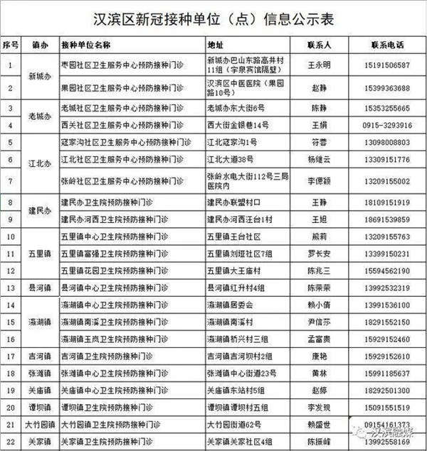 接種新冠疫苗是“外防輸入、內(nèi)防反彈”最根本最有效的措施。為加快建立牢固的全民免疫屏障,提高免疫接種速度,自12月20日至12月31日,漢濱區(qū)所有新冠病毒疫苗接種門診(點(diǎn))中午取消休息,采用輪換班方式加班接種;新城街道、老城街道、江北街道、建民街道(含高新區(qū))轄區(qū)內(nèi)新冠接種門診(點(diǎn))取消周末;接種時(shí)間統(tǒng)一調(diào)整為每天8:00至17:00時(shí)。